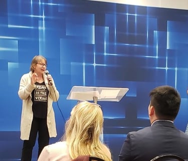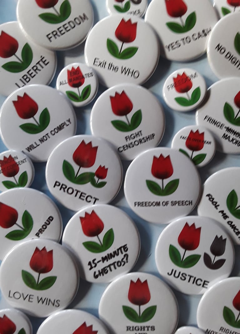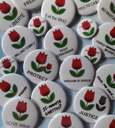 The first step for those of us asking questions and seeking answers in a time of unprecedented, unwarranted government encroachments on our inalienable rights and freedoms is mutual recognition to ward off despair. That was the impetus behind our decision in late 2021 to form Tulips4Freedom.org and to create the symbolic tulip button, a silent statement of conscience and refusal to be shamed. Its companion, the brief Living Mission Statement, expresses our commitment as individuals to the rights and freedoms previously generally assumed but now pridefully violated. When world-renowned scientists, doctors, journalists, and media personalities are maligned and “cancelled” by complicit media, and science is unmoored from ethics, it is up to us, the grass-roots citizenry, to carry the message. We can literally carry that message on our bodies, symbolically or with words, by wearing a tulip button wherever we go. We have now distributed over 30,000 tulip pins – plain, and with relevant messages - at meetings, rallies, and through the mail. As our numbers grow, we cannot be ignored. We will go forward with purpose and empathy.